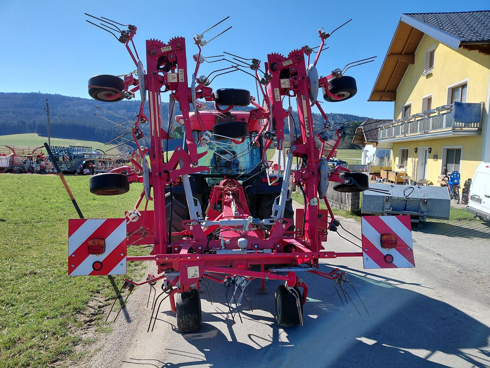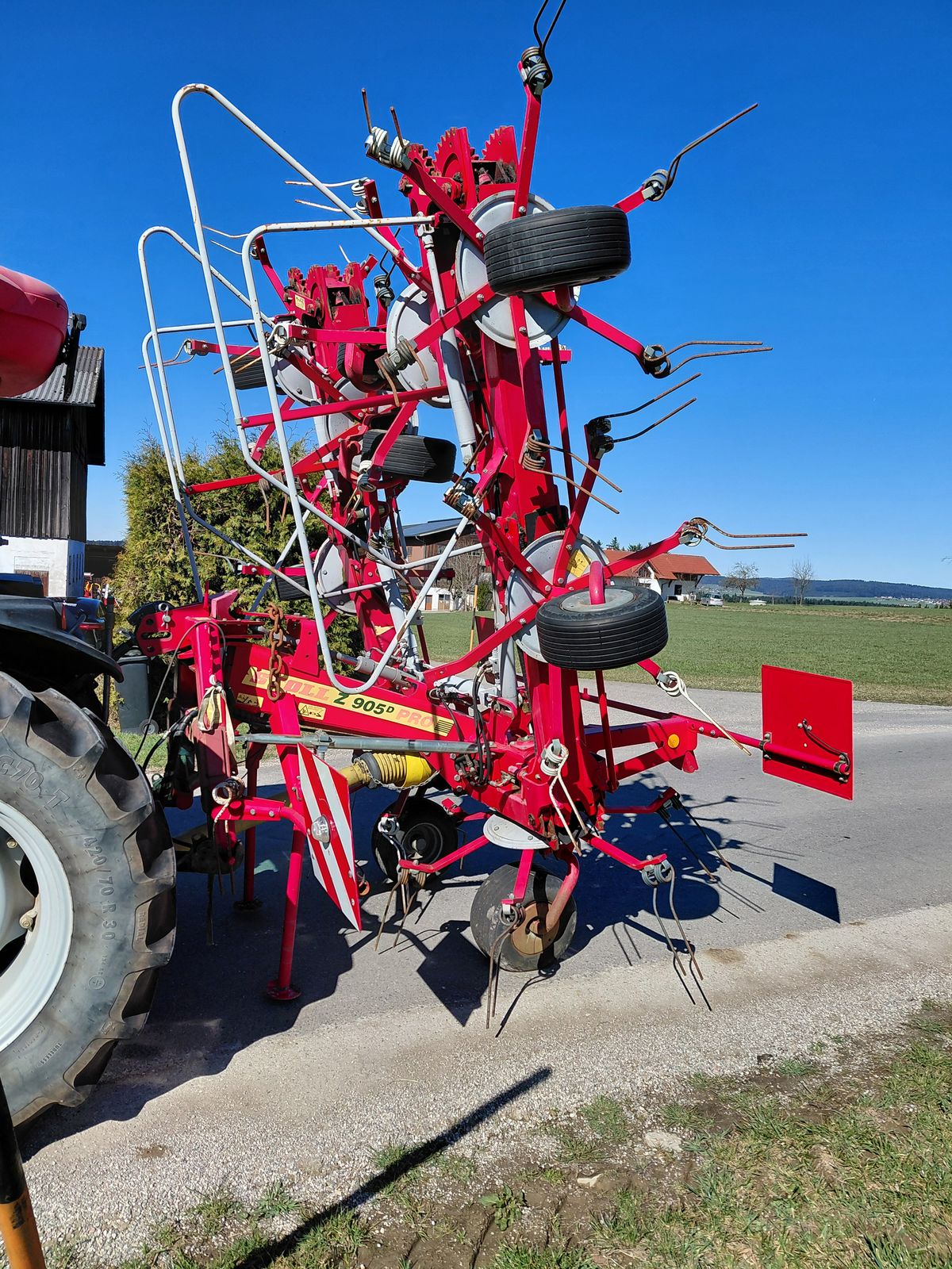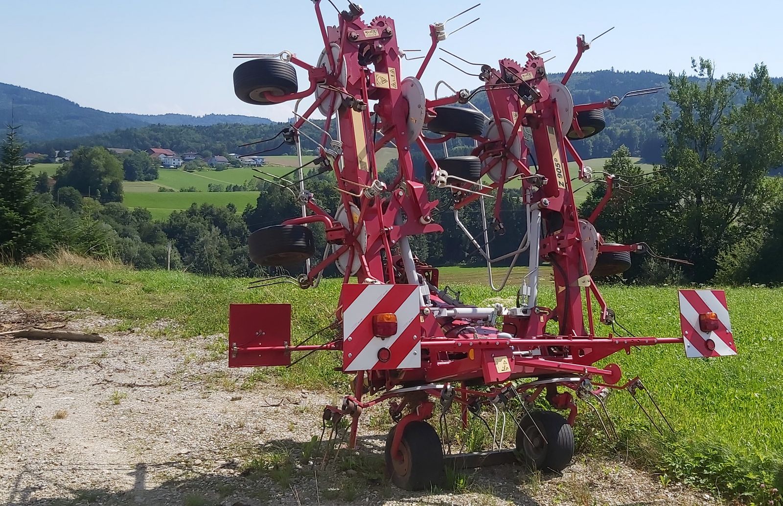 Eine der herausragenden Eigenschaften dieses Kreiselheuers ist seine beeindruckende Arbeitsbreite von 860 cm. Diese Breite ermöglicht es, große Flächen in kürzerer Zeit zu bearbeiten, was die Effizienz der Heuernte erheblich steigert.