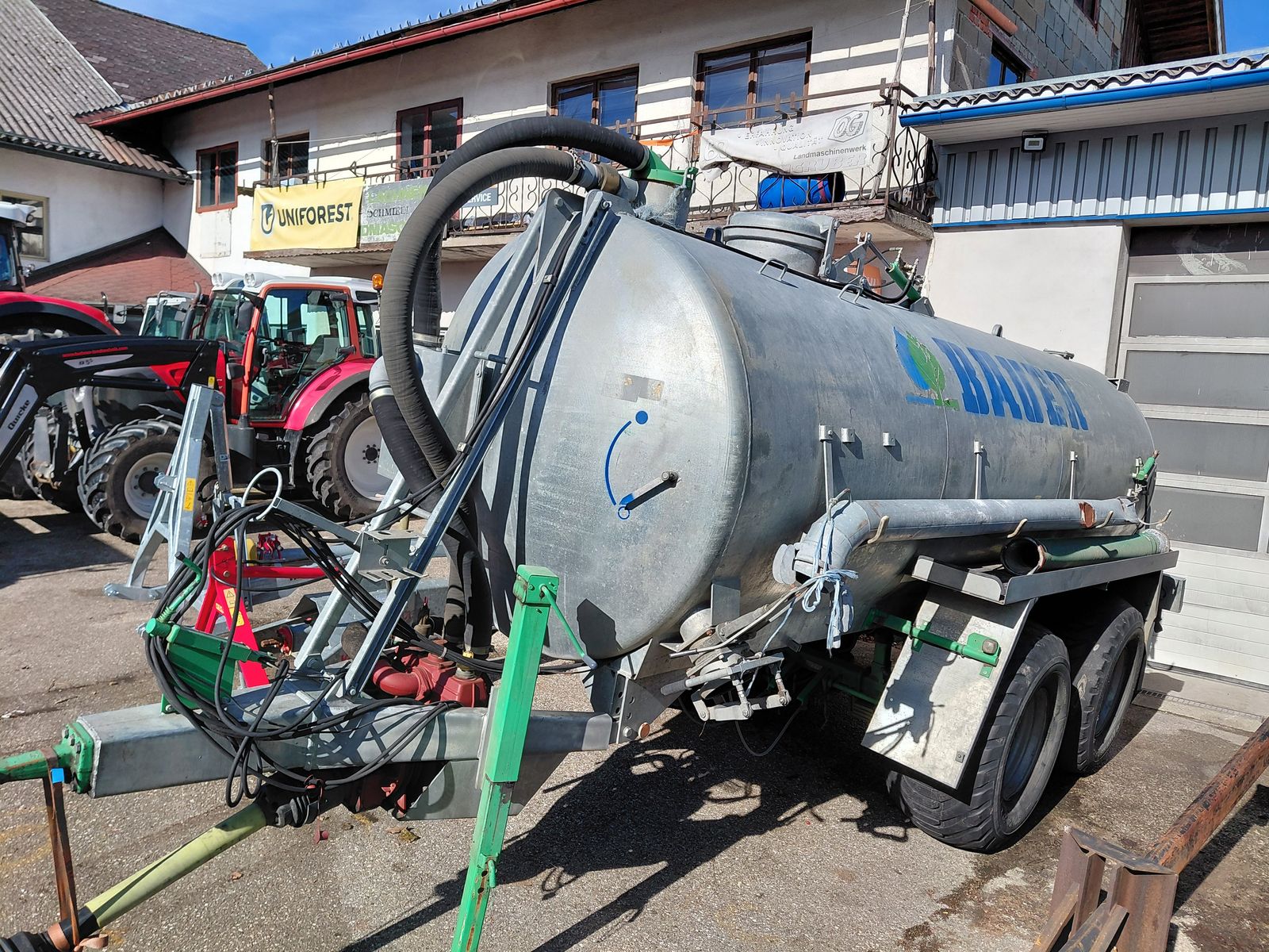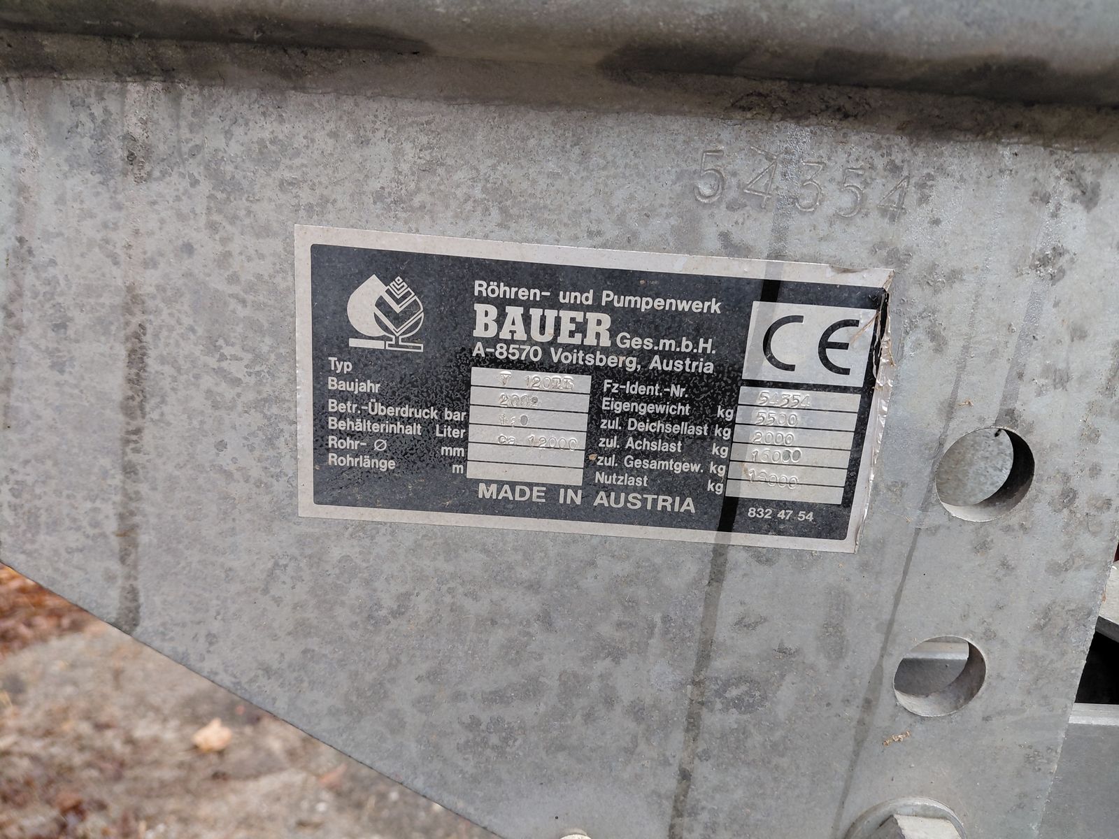 Das Güllefass der Marke Bauer, V 120 12000 lt. aus dem Baujahr 2004, überzeugt mit einer Kapazität von 12.000 m³ und ist somit ideal für landwirtschaftliche Betriebe, die eine effiziente und großvolumige Gülleausbringung benötigen.