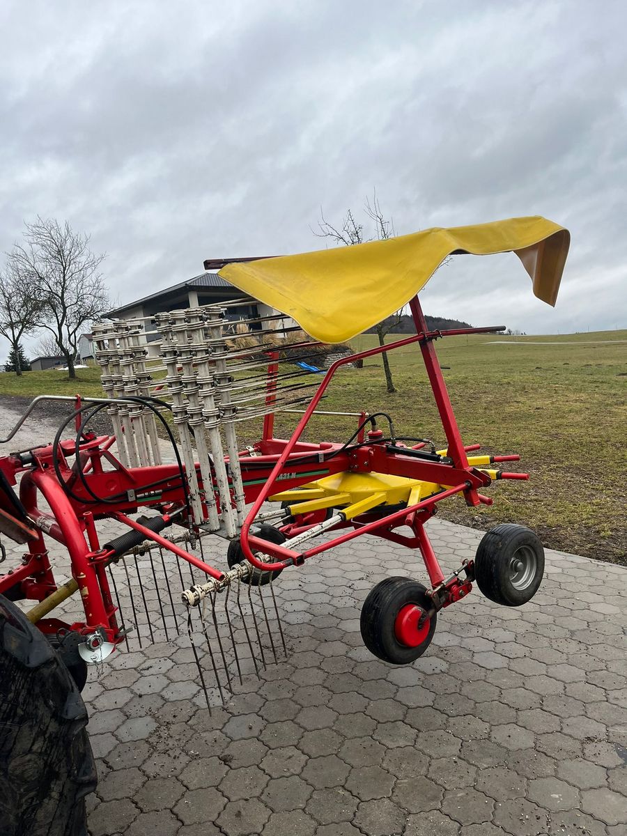 Der Schwader befindet sich in der Zustandsklasse "Gut" (Klasse 2), was bedeutet, dass er trotz seines Alters gut gepflegt ist und zuverlässig arbeitet. Dieses Gerät ist ideal für Landwirte, die einen robusten und leistungsfähigen Schwader suchen, der ihnen bei der Erntezeit wertvolle Dienste leisten wird.