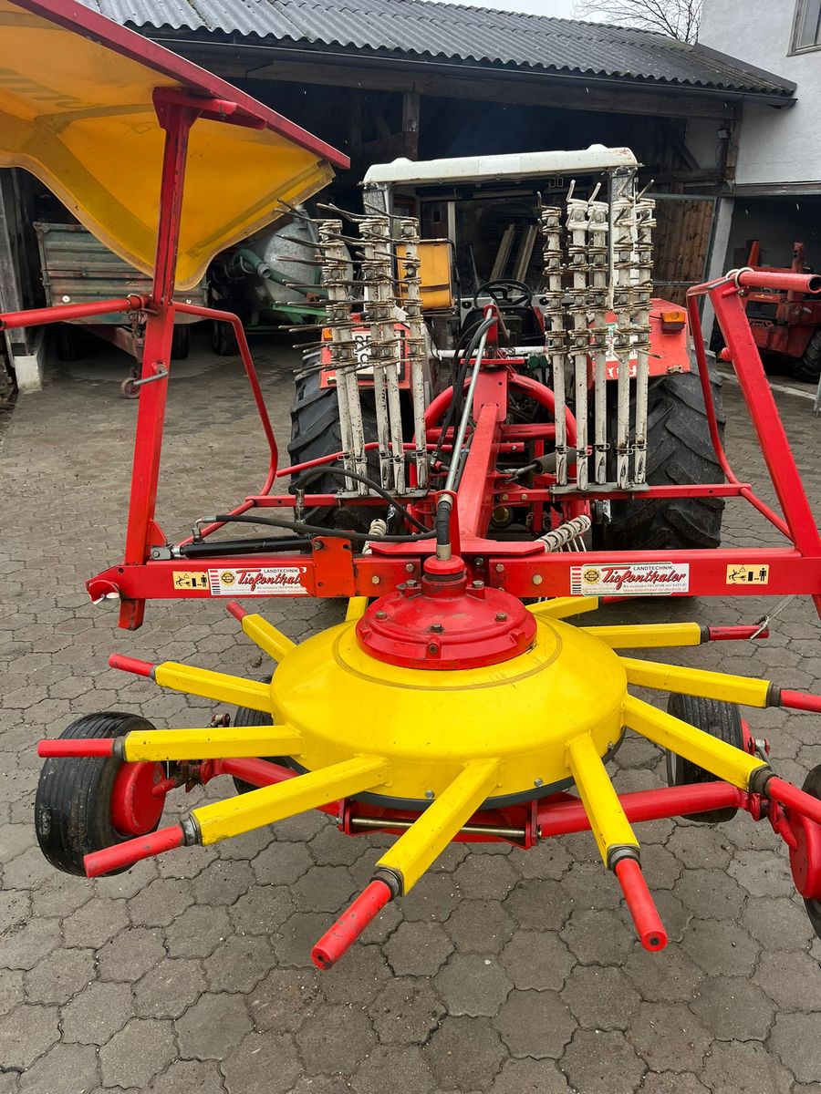 Der Pöttinger Schwader, Top 421 N mit Tastrad und Tandemachse ist ein zuverlässiges und effizientes Gerät für landwirtschaftliche Arbeiten. Mit ca. 500 Betriebsstunden ist er wenig genutzt und bietet somit eine lange Lebensdauer. Die Arbeitsbreite von 420 cm ermöglicht eine effektive Bearbeitung großer Flächen in kurzer Zeit.